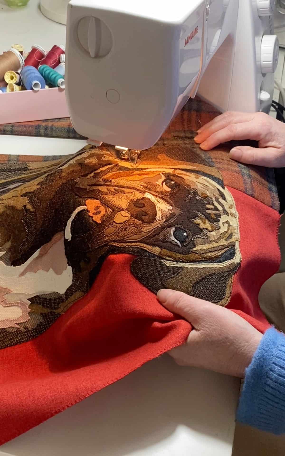 Upon completion of the fabric appliqué I embellish my work with embroidery to highlight and enhance the animals’ features, and help distinguish different areas of pattern adding to the creation of depth.